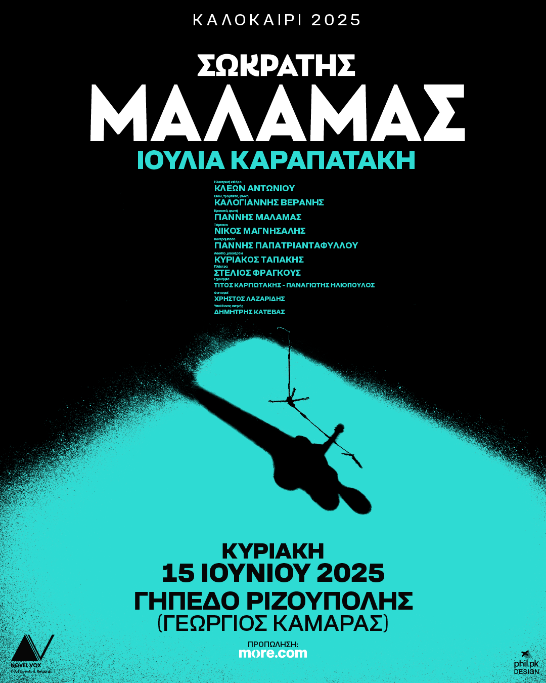 Ο Σωκράτης Μάλαμας κάνει στάση στην Αθήνα, επιλέγοντας το Γήπεδο της Ριζούπολης για την πρώτη του μεγάλη καλοκαιρινή εμφάνιση στην πρωτεύουσα. Το κοινό θα έχει την ευκαιρία να απολαύσει ένα πλούσιο πρόγραμμα, με τραγούδια που αγαπήθηκαν μέσα στον χρόνο, σε μια συναυλία όπου κοινό και καλλιτέχνες γίνονται ένα.