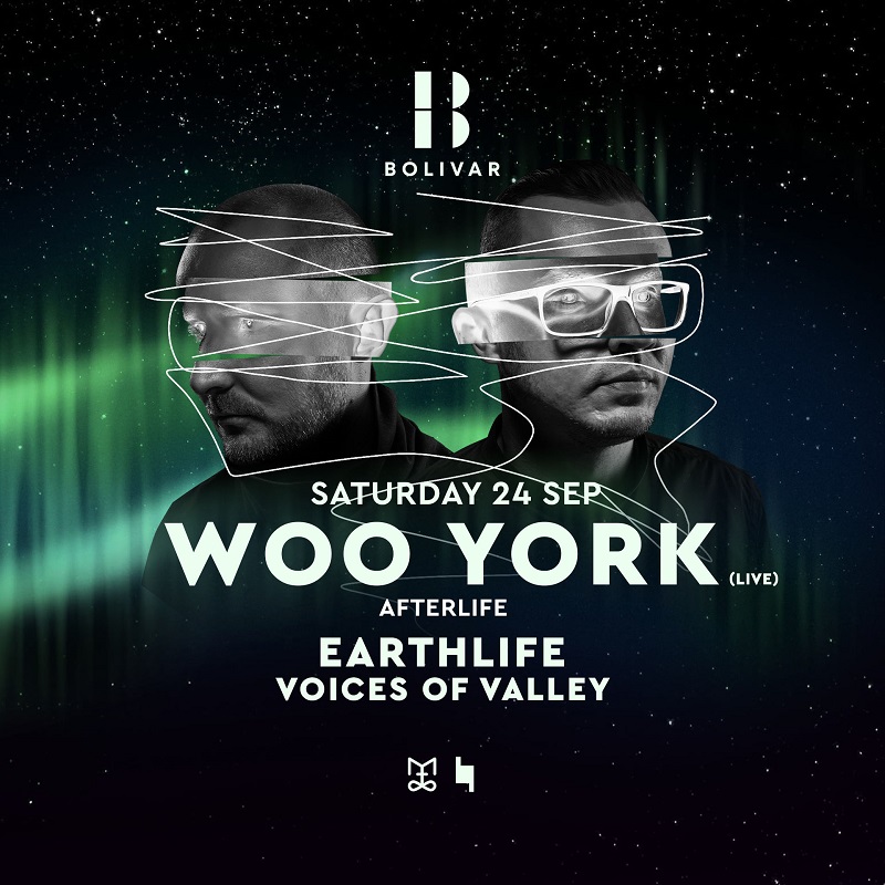 Το Σάββατο 24 Σεπτεμβρίου το δίδυμο των Woo York, με καταγωγή από το Κίεβο, γνωστών για τις παραγωγές και τις ιδιαίτερες εμφανίσεις τους στην Afterlife, θα χαρίσουν στο κοινό της Αθήνας ένα μελωδικό techo live performance. Μαζί τους οι Ιταλοί EarthLife και οι Voices Of Valley. Eίσοδος: 10€ με ποτό.