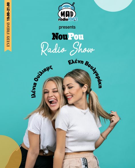 Η ομάδα του NouPou.gr, του βραβευμένου website των νοτίων προαστίων, έρχεται στο Mad Radio 106,2 (κάθε Παρασκευή, 19:00-21:00) για να σας αλλάξει τα απογεύματα της Παρασκευής με μια ραδιοφωνική εκπομπή γεμάτη λαχταριστές γεύσεις, εμπνευσμένες προτάσεις και αναπάντεχες ιδέες για το πώς να ξοδέψετε υπέροχα το Σαββατοκύριακό σας.