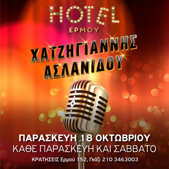 Οι δύο αγαπημένοι καλλιτέχνες, καθένας εκ των οποίων έχει τη δική του μοναδική και επιτυχημένη πορεία στην ελληνική μουσική, θα μας χαρίσουν ανεπανάληπτες μουσικές βραδιές. Οι επιτυχίες, οι μοναδικές ερμηνείες, ο δυναμισμός και το πάθος του Μιχάλη Χατζηγιάννη και της Μελίνας Ασλανίδου «ενώνονται» στον ξεχωριστό χώρο του «Hotel Ερμού» και το αποτέλεσμα θα είναι μοναδικό.