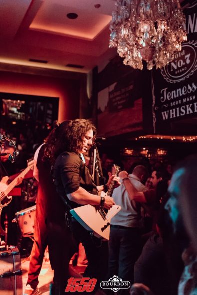 Λίγη ώρα αργότερα στη παρέα μας προστίθενται οι 1550 το συγκρότημα που κάθε Σάββατο ξεσηκώνουν το κοινό του Bourbon. «Ξεκινήσαμε κάνοντας σκόρπια live μέχρι που καταλάβαμε πως εδώ είναι το σπίτι μας» αναφέρει ο Ρουσσέτος για την συνεργασία τους που συμπληρώνει τέσσερα χρόνια. «Καταλαβαίνεις αμέσως πότε ένας χώρος σου ταιριάζει κι εμείς από το πρώτο καιρό ταιριάξαμε απόλυτα με το Bourbon. Είμαστε πολύ χαρούμενοι για τη συγκεκριμένη συνεργασία» επιβεβαιώνει και ο Μηνάς, τραγουδιστής του συγκροτήματος.