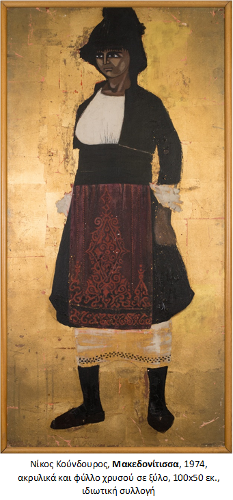 Στα ζωγραφικά του έργα συναντά κανείς το αχόρταγο, σαρωτικό βλέμμα του Νίκου Κούνδουρου και την ανάγκη του να αποτυπώσει τον κόσμο με τα δικά του χρώματα, τα βυζαντινά, τις αποχρώσεις της λαϊκής παράδοσης, της Ελλάδας, των σωμάτων και των αγίων της.