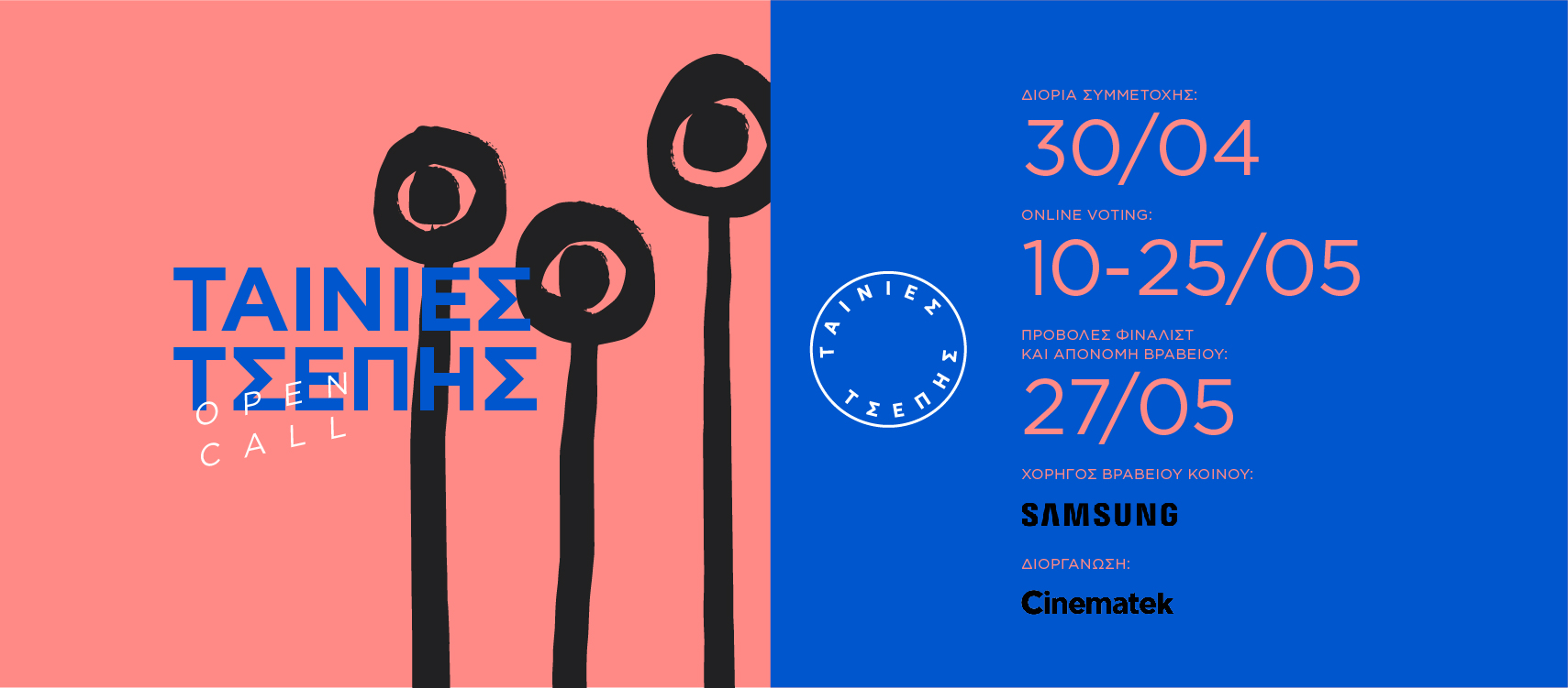 Η προθεσμία υποβολής των ταινιών λήγει στις 30 Απριλίου 2023, όπου και θα επιλεγούν 10 φιναλίστ ταινίες που στη συνέχεια θα προβληθούν ελεύθερα online, ώστε να ψηφιστούν από το κοινό και να διεκδικήσουν το Βραβείο Κοινού – Samsung. Θα ακολουθήσει η Τελετή Λήξης στον κινηματογράφο Άστορ (στο κέντρο της Αθήνας), όπου θα προβληθούν οι 10 φιναλίστ ταινίες και θα απονεμηθεί το βραβείο, που θα συνοδεύεται από ένα κινητό Samsung Galaxy S23 Ultra και το χρηματικό έπαθλο των 1.000 ευρώ.