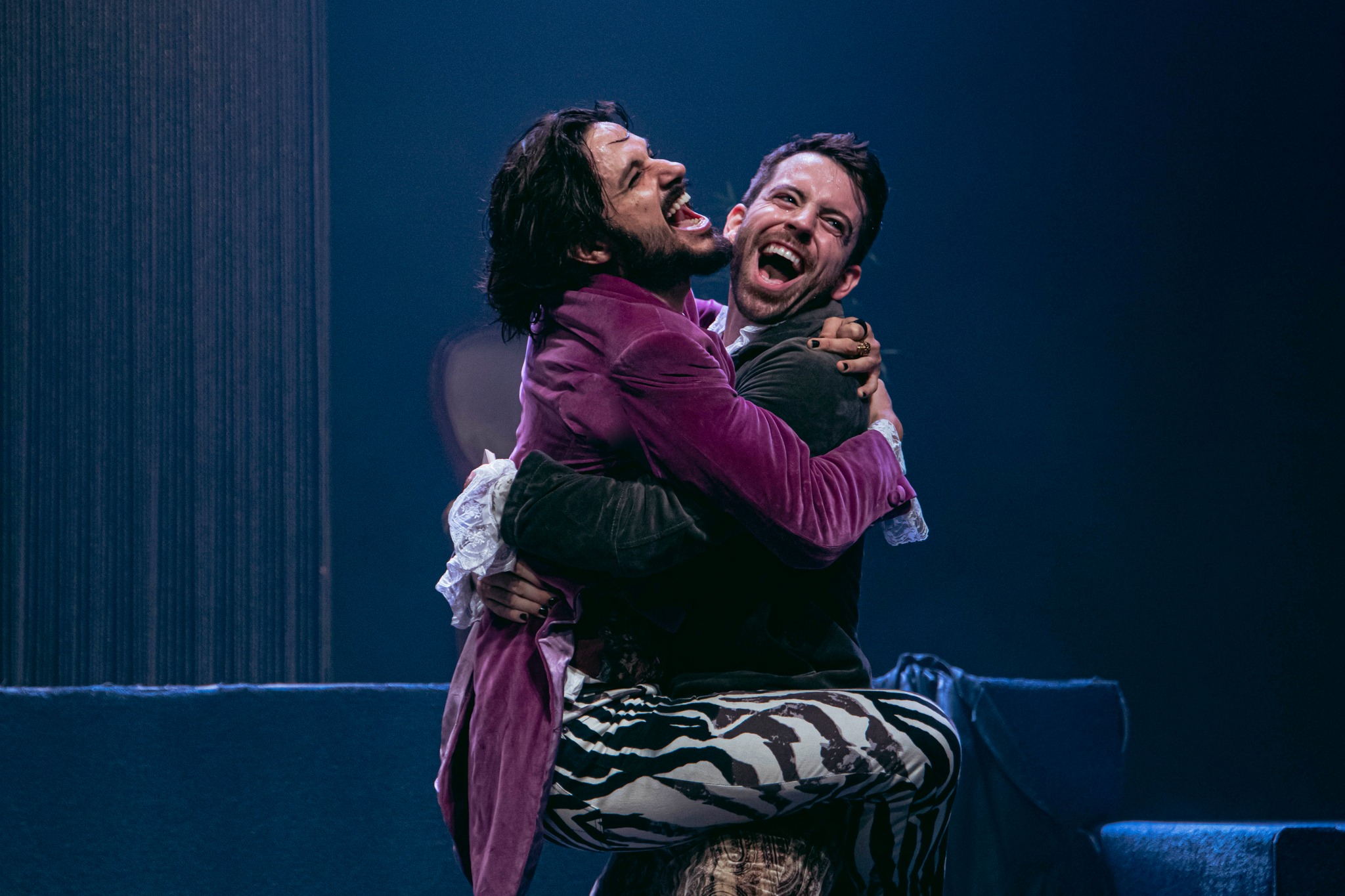Το τρίτο κουδούνι λοιπόν χτύπησε και ξαφνικά νόμιζα πως βρίσκομαι στο φινάλε μιας δυναμικής, ροκ συναυλίας. Μέσα σε μια ατμόσφαιρα με καπνούς, σκληρούς ήχους, βαμμένα μαύρα νύχια και πολύ eye-liner, ο Γιάννης Νιάρρος βγήκε στη σκηνή ως άλλος ροκ σταρ και παρουσίασε τους συντελεστές του έργου έναν – έναν, όπως ακριβώς γίνεται στο κλείσιμο κάθε συναυλίας. Με αυτή την έναρξη αμέσως σου γεννάται ο συνειρμός ότι εκείνος θα είναι ο πρωταγωνιστής, όμως γρήγορα καταλαβαίνεις ότι στην παράσταση αυτή δεν υπάρχει ένας πρωταγωνιστής. Πρωταγωνιστές είναι όλοι. Όλοι «κλέβουν την παράσταση» και όλοι σε συνεπαίρνουν, ο καθένας με τον δικό του τρόπο.