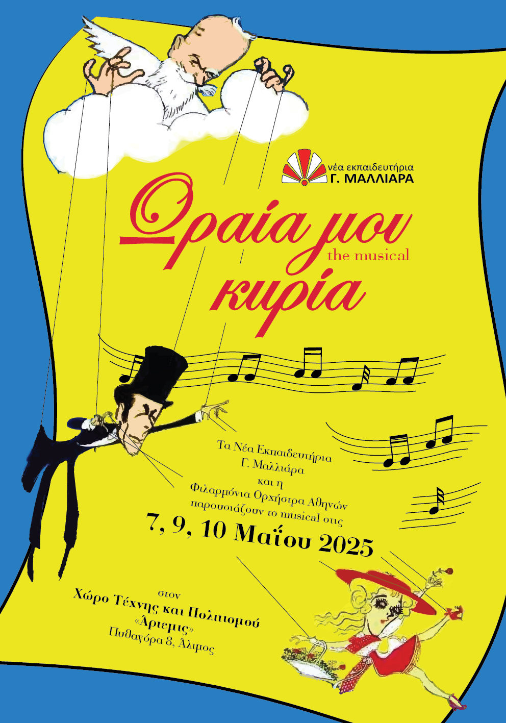 Η μαγεία του διάσημου μιούζικαλ «Ωραία μου Κυρία» ζωντανεύει στη σκηνή από τους μαθητές και τις μαθήτριες των Νέων Εκπαιδευτηρίων Γ. Μαλλιάρα, σε συνεργασία με τη Φιλαρμόνια Ορχήστρα Αθηνών.