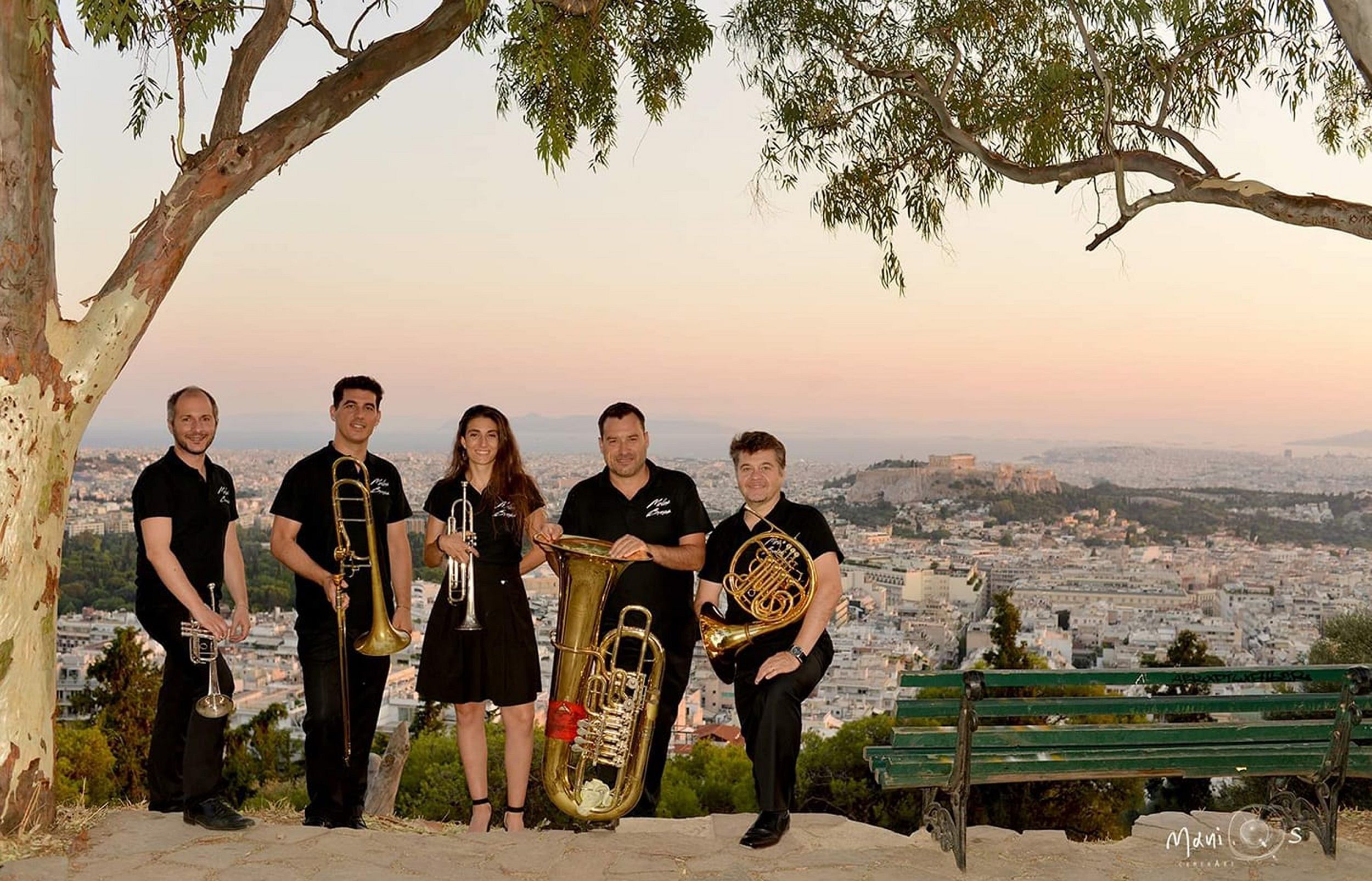 Σπύρος Αρκούδης, Σοφία Σιωρά (τρομπέτα), Αντώνης Λαγός (κόρνο), Γιώργος Κρίμπερης (τρομπόνι), Παναγιώτης Μπακόλας (τούμπα)