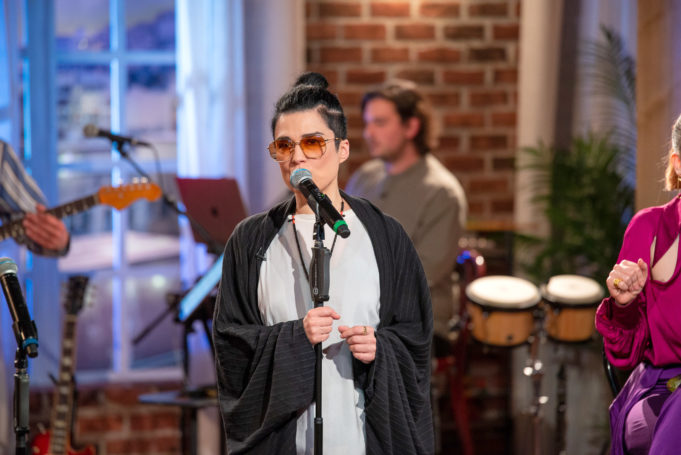 «Χωρίς εσένα». Το τραγούδι μέσα από το οποίο το κοινό αγάπησε την Ευσταθία, χάρη στην αλήθεια που κρύβουν οι στίχοι του. Εδώ «απογειώνεται» από τους μουσικούς της Μπάντας.