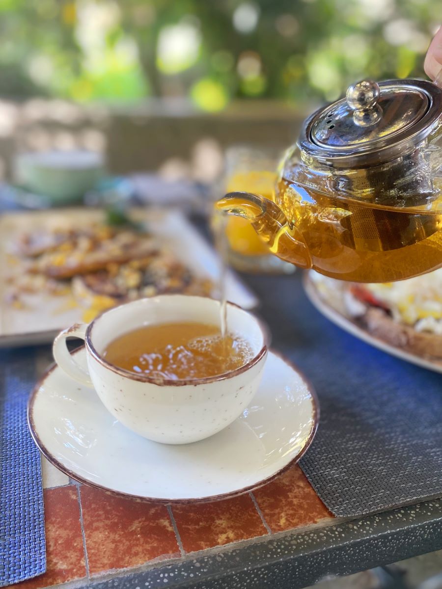 Where else can you enjoy your breakfast in a real, functional orchard? In the heart of nature, in the shadow of elderly pines, next to the olive grove and the citrus trees, among the vegetable plots laden with the bounty of the season, with the scents of meditteranean herbs wafting in the air, and the sound of frogs serenading in the lily pond, you will enjoy a Greek brunch as it was truly meant to be.