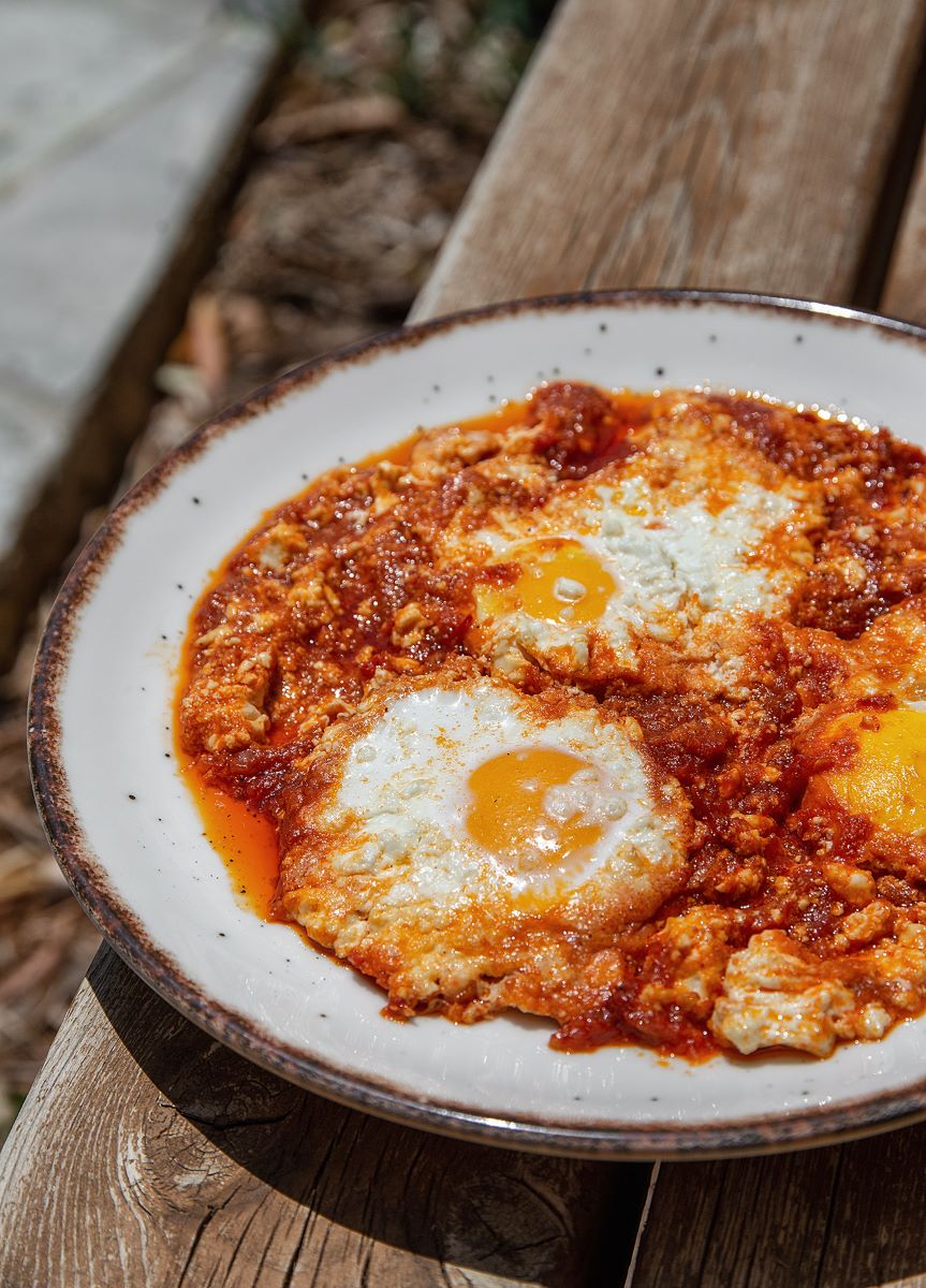 Based on the free range eggs offered by the chickens you will see enjoying the sun among the plots, Perivoli’s breakfast menu has an array of tasty, filling and healthy dishes: Kagianas, the Greek version of shakshuka made with sauce from theis summer tomatoes, and artigianal feta from Euvoia island, herb omelet, eggs sunny side up served on toasted sourdough bread, scrambled eggs with sauteed greens freshy picked like they do in the Epirus mountains. But also yummy French toast with bergamot mousse, banana-oat pancakes with walnuts and honey from their hives, homemade granola served with Greek yoghurt from a local monastery.