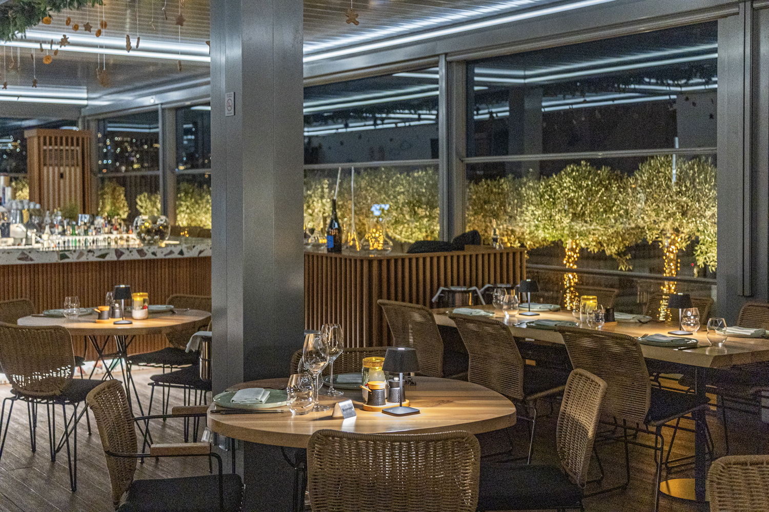 Angeliki behind the bar is already preparing the welcome cocktail, with champagne, gin, bergamot and elderflower. Chic, elegant and sexy, like the entire space that unfolds at the edge of the sky, around the impressive bar. A familiar atmosphere, of a warm, distinctive and chic all day venue, that loves wood in its most honeyed and soothing expression, a feeling as if you are in your own living room, while Metayer prepares something wonderful in the kitchen. And this is what sets O’live apart. The fact that it places fine dining in an everyday context and at democratic prices, without forcing you to dress up if you don’t feel like it.