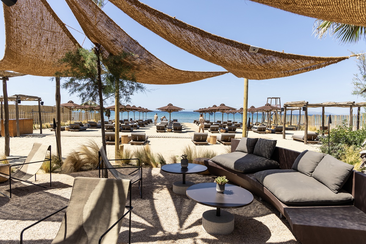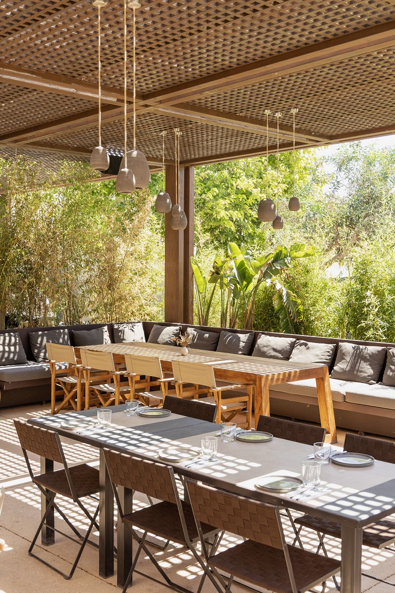 The natural material tents, as well as the Mediterranean plants, add a touch of freshness to the space, with the color tones of sand and stone harmonizing perfectly with the natural landscape, creating the relaxed, urban atmosphere that distinguishes The C.