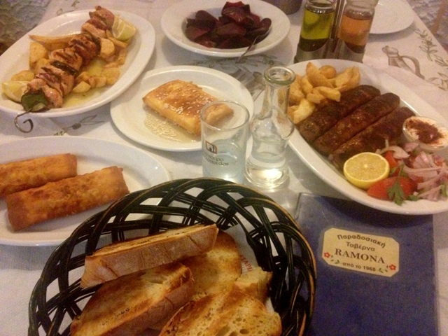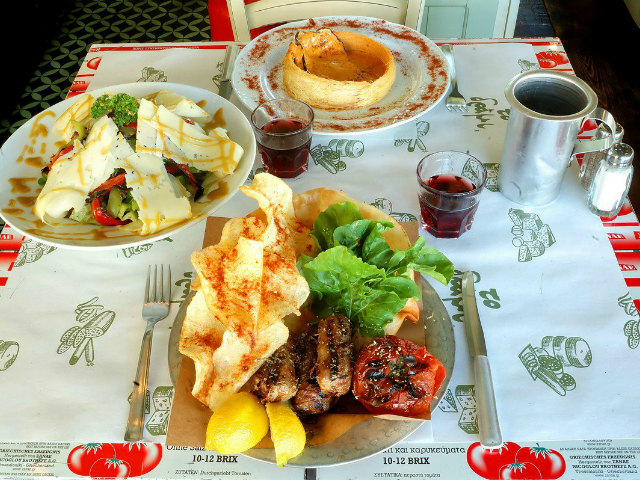 The “Myrtia” family tavern, with its covered courtyard and rustic interior, serves simple but delicious dishes. They specialize in juicy grilled meat cooked-to-order, such as steaks, burgers, sausages and of course ribs, which tend to steal the show as they are presented forming a mountain. Served with coarsely chopped, well-fried potatoes on the side. Paired excellently with saganaki (fried cheese), homemade tzatziki and fried aubergines. In general, portions are quite large, but make sure to reserve some space in your stomach for the final treat, loukoumades (fried dough) with honey and cinnamon, but also chocolate.