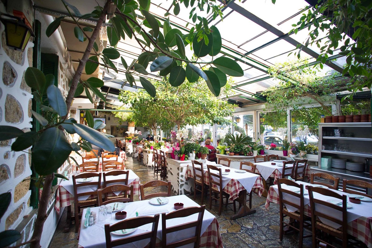 It opened in the early 1990s in a restored mansion built in 1927. It has an inner courtyard filled with flowers, but in the summer most people prefer the outdoor courtyard, which is shaded by reeds. Try the fried liver, the steak, the burgers, the perfectly cooked pork tenderloin and the mini cheese pies. For dessert, they will treat you to loukoumades and semolina halva.
