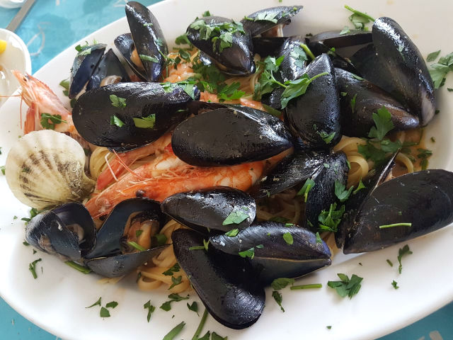 The first thing to make impression after you take a seat at the tavern’s blue tables is that they serve fresh scallops, fish and delicious beef burgers, as well as authentic Italian pizza, focaccia and spaghetti. Yes, it is an Italian trattoria disguised as a Greek fish tavern that, among other things, makes great grilled dishes. Does this seem incredible to you? Incredible, yet true. Even more remarkably, everything is of exceptional quality.