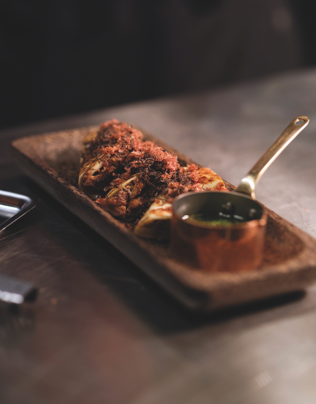 The fusion menu balances intelligently between the Mediterranean, Asia and Latin America, emphasizes the raw material and is not afraid of cosmopolitanism. It is divided into the Land, Sea and Farm sections and includes suggestions such as smoked eggplant with yogurt and sofrito miso, squid with aioli, tarragon and togarashi, tuna with olive oil, yuzu and jalapeno, and the umami porterhouse with padrón peppers and marrow.