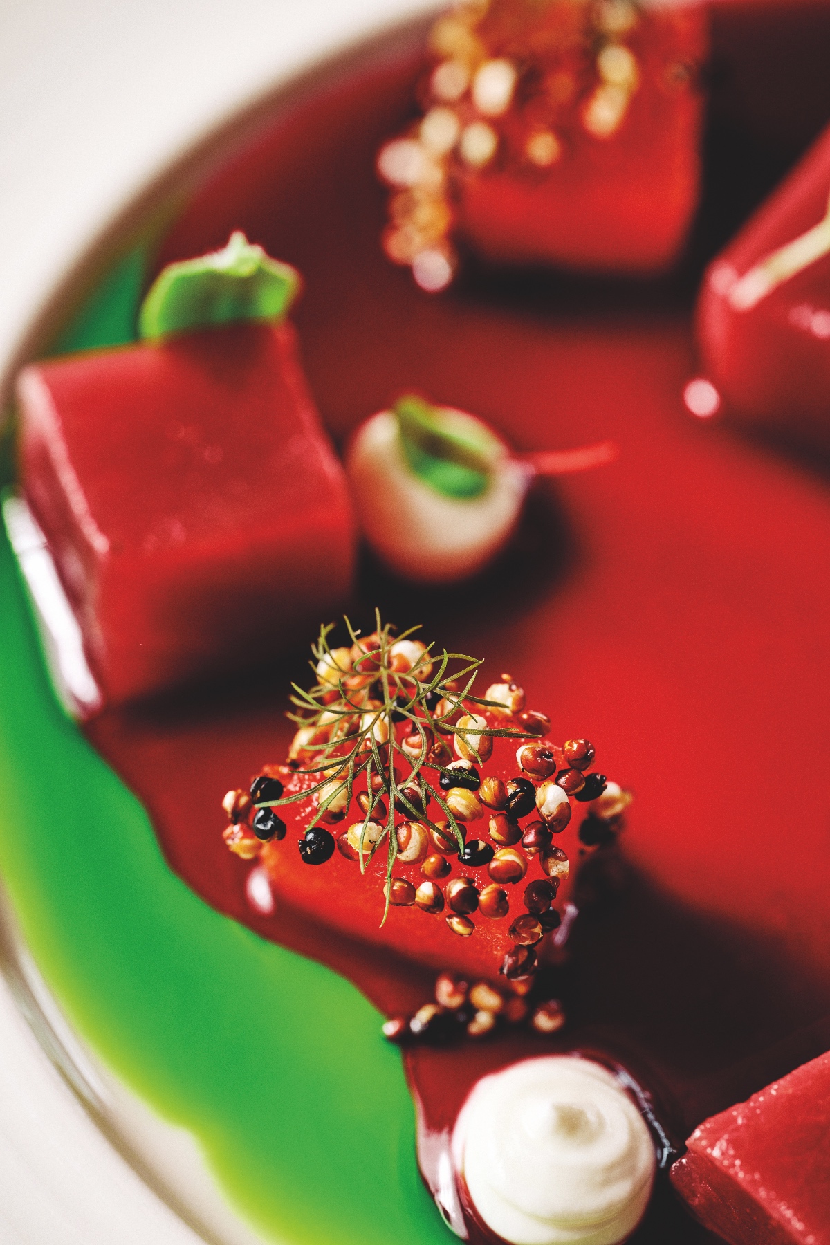 From the menu, the signature cold caviar pasta and the surf n’ turf rabbit with lobster will remain in your memory forever. Plus, the experienced wine pairing from an excellent list and the professional attitude of the smiling staff will excite you as well.