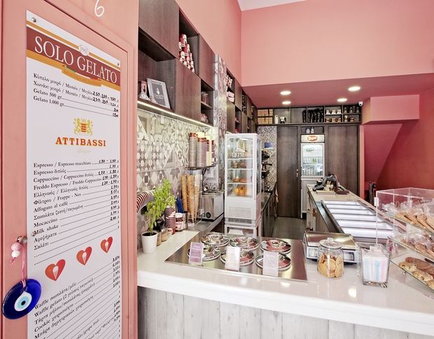 Το παγωτό θα το απολαύσεις σε όλες του τις μορφές και συνδυασμούς. Είτε σε milkshake, είτε σε κάποιο από τα χειροποίητα γλυκά, όπως το σουφλέ σοκολάτας, το χειροποίητο κανόλο Σικελίας, τα brownies και την μηλόπιτα. Βάλ’το ανάμεσα σε ιταλικό μπριός και θα μας ευχαριστείς αιωνίως. Ή αλλιώς, δοκίμασέ το με την homemade- κάτι ενδιάμεσο σε crispy και αφράτη- βάφλα που δημιούργησαν μετά από πειράματα περίπου 2 μηνών.