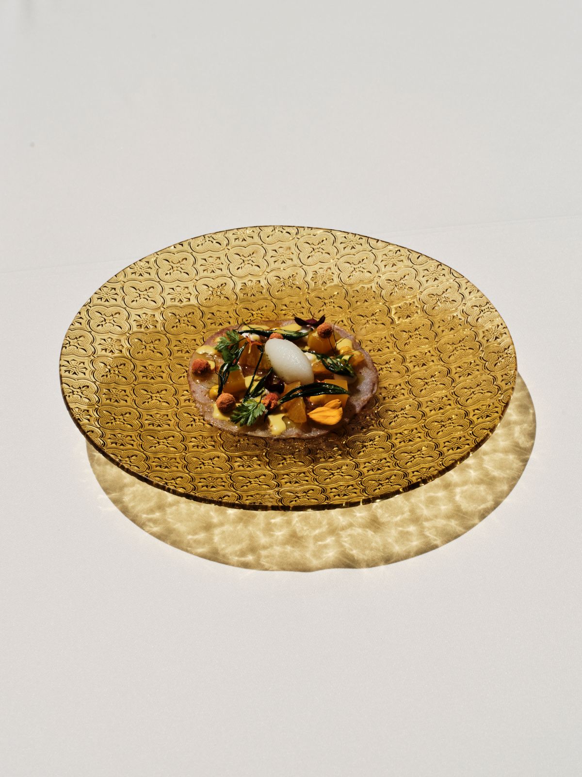 Από την ιδιόμορφη «Carbonara» του Έκτορα Μποτρίνι με κοιλιά ξιφία και καραμελωμένα φιστίκια Αιγίνης, μέχρι τις εμπνευσμένες δημιουργίες του Γιώργου Παπαζαχαρία, όπως η γαρίδα κοιλάδας με περγαμόντο σε ζύμωση, κεφίρ μοσχολέμονου και άνθη κερασιάς, κάθε πιάτο υπόσχεται ένα μοναδικό ταξίδι γεύσης και αισθήσεων. Το μενού κορυφώνεται με πιάτα όπως η γλώσσα αρωματισμένη με μαστίχα και σάλτσα από μούσμουλο, τα μοσχαρίσια μάγουλα «σοφρίτο» και το γλυκό φινάλε «Η δική μας κερήθρα», υπογράφοντας μια βραδιά υψηλής γαστρονομίας στην καρδιά της αθηναϊκής ριβιέρας.