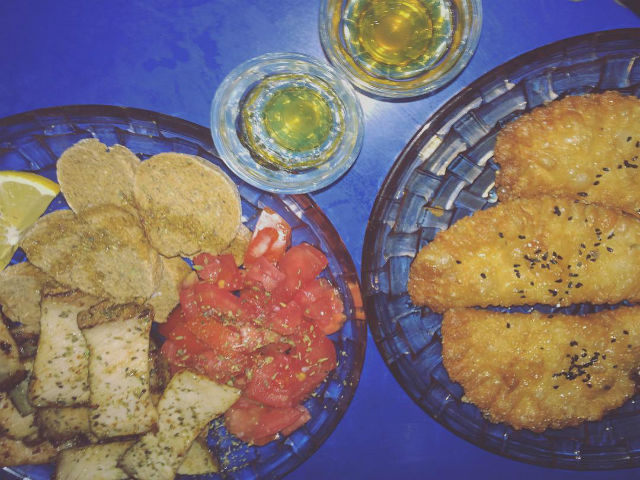 Τελευταία, αντί για αίμα κυλάει στις φλέβες μου ρακή, από αυτές τις σκετοοινόπνευμα τις κρητικές (που εμένα δεν με λες και γερό ποτήρι αλλά δεν ξέρω γιατί, συμβαίνει), οπότε ζήτησα και τέτοια. Εξαιρετική ήταν. Όμως δεν γινόταν να μην δοκιμάσουμε και την άλλη την γνωστή αμοργιανή. Την ψημένη. Μας την έφεραν παγωμένη σε σφηνάκια. Η Μαρία μου είπε το μυστικό που την κάνει τόσο διαφορετική και ποιοτική. «Ο παππούς μου είχε πάρει τη συνταγή από το μοναστήρι της Χοζοβιώτισσας στην Αμοργό». Αυθεντικά πράγματα. Όπως ακριβώς και η φάση εκεί. Τα τσίγκινα (δώσε μου τσίγκινο και πάρε μου την ψυχή) τραπεζάκια ήταν τριγυρισμένα από παρέες που γελούσαν και τραγουδούσαν δυνατά (ναι δεν το λέω έτσι) Θανάση και Σωκράτη. Άιντε εκεί μακριά, μακριά στην Ανδρομέδα, άιντε πίνουν τσίπουρο και τρων λακέρδα και τέτοια πράγματα σου λέω. Και χαρά, και γέλια, και τσουγκρίσματα.