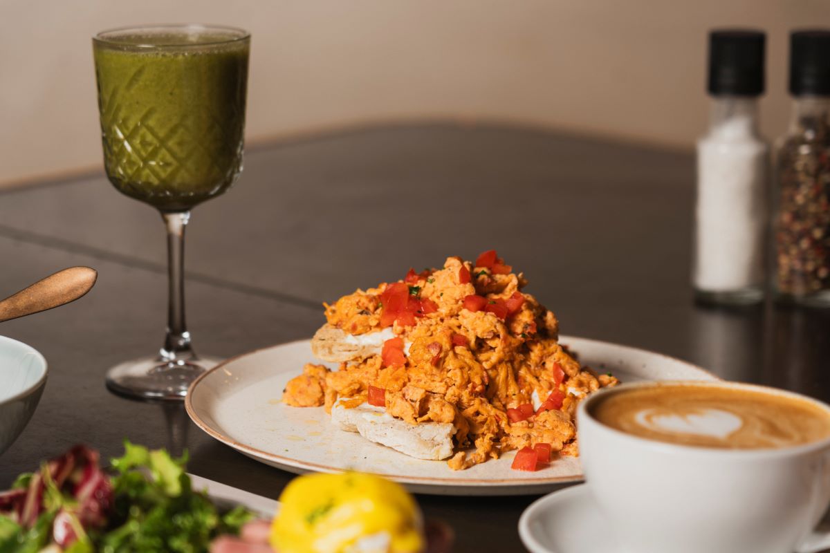 Το πρώτο πιάτο που ήρθε στο τραπέζι μας ήταν το πιο παραδοσιακό. Κοίτα να δεις που το brunch έχει μπει τόσο πολύ στη ζωή μας που έχουμε φτάσει σε σημείο να μπορούμε να χαρακτηρίσουμε κάποια πιάτα παραδοσιακά. Ας αφήσουμε, όμως, τη φιλοσοφία και ας επιστρέψουμε στο φαγητό. Η αρχή έγινε με scrambled eggs με φρέσκια ντομάτα και μους φέτας, σερβιρισμένα πάνω σε ιταλική focaccia. Τα αβγά ήταν ζουμερά και σε συνδυασμό με τη μους από το εθνικό μας τυρί αποτέλεσαν το ιδανικό ξεκίνημα για το λουκούλλειο brunch που θα ακολουθούσε.