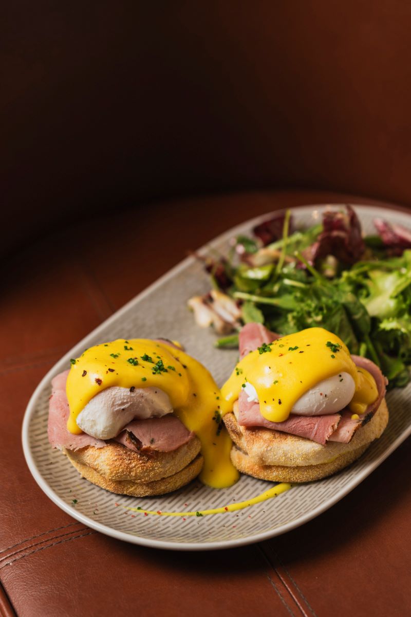 Τελευταία από τα αλμυρά ήρθαν τα αβγά με παστράμι γαλοπούλας και σάλτσα hollandaise. Συνοδεύονται και αυτά από πράσινη σαλάτα και english muffins και όπως όλα τα πιάτα που διαβάσατε παραπάνω αποτελούν ένα πλήρες γεύμα.