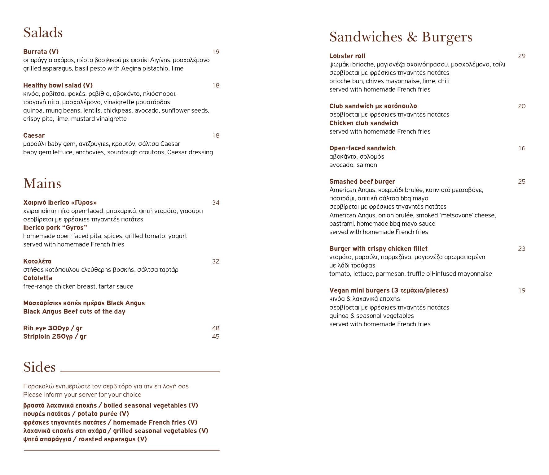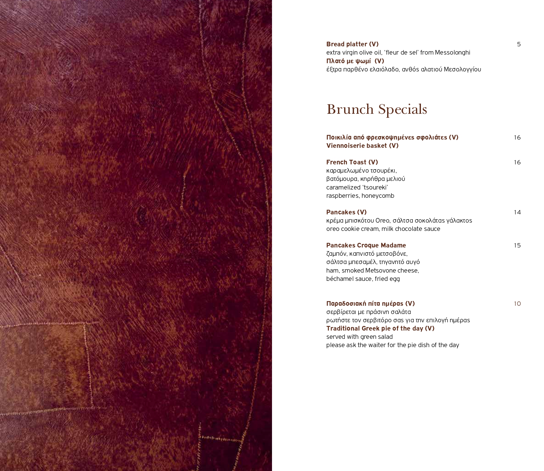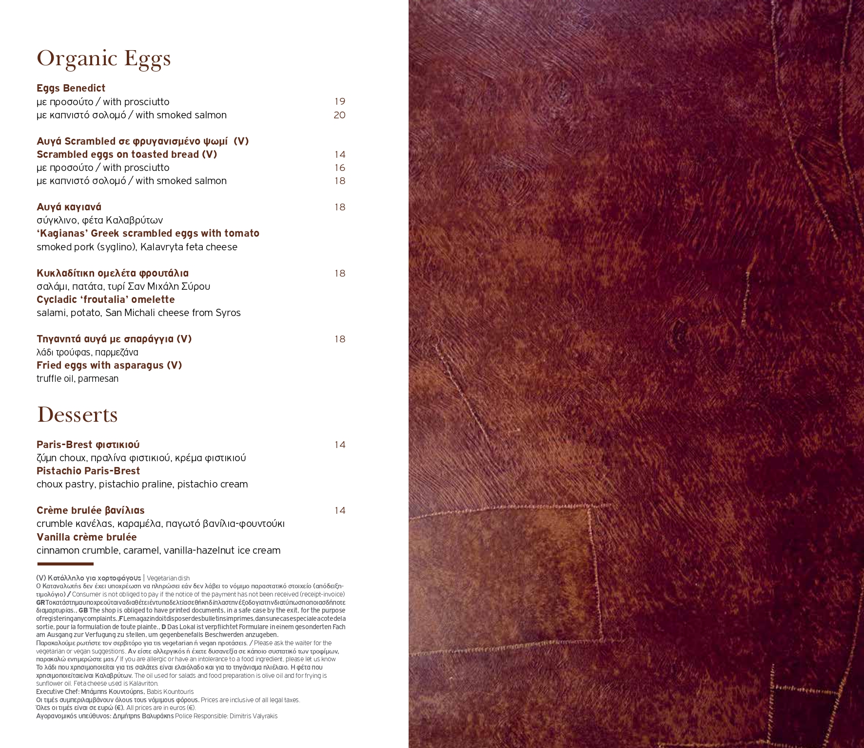 Το ανανεωμένο μενού με την υπογραφή του executive chef Μπάμπη Κουντούρη και οι τιμές του φημισμένου brunch που έφερε νέα διάσταση στα Σαββατοκύριακα.