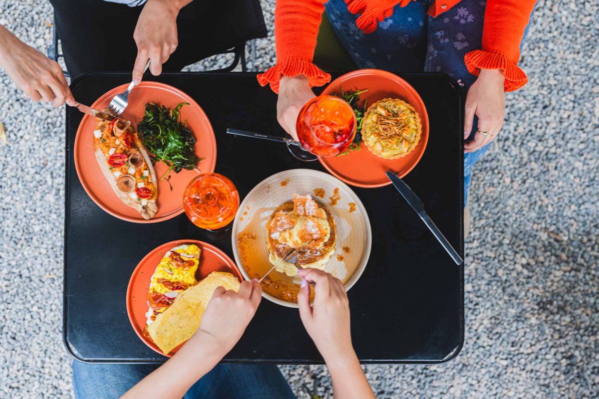 Και ενώ λέγαμε πως το γλυκό δεν ήταν στα σχέδια, το τραπέζι των διπλανών μάς έπεισε για το αντίθετο. Μοιραστήκαμε τρία γλυκά και όπως αποδείχθηκε «πολύ καλά κάναμε». Η αυγόφετα τσουρέκι ήταν σκέτη απόλαυση, με καραμελωμένα μήλα, πραλίνα σοκολάτας, παγωτό βανίλια και σάλτσα αλμυρής καραμέλας. Τα pancakes ήρθαν σε δύο εκδοχές: μία με σαντιγί πραλίνας, φουντούκια και choco pops (ναι, αυτά που τρώγαμε μικροί για πρωινό), και άλλη μία με κρέμα μπουγάτσας, σιρόπι κανέλας και τραγανό φύλλο.