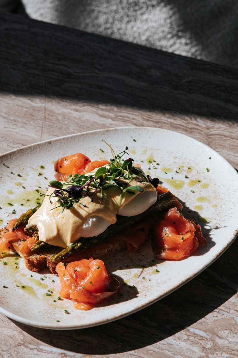 Στα must try το Eggs Royale, που σερβίρεται με καπνιστό σολομό, σπαράγγια και αβγά ποσέ πάνω σε ένα υπέροχο προζυμένιο ψωμί. Το πιάτο ολοκληρώνεται με μια εκπληκτική σως hollandaise.
