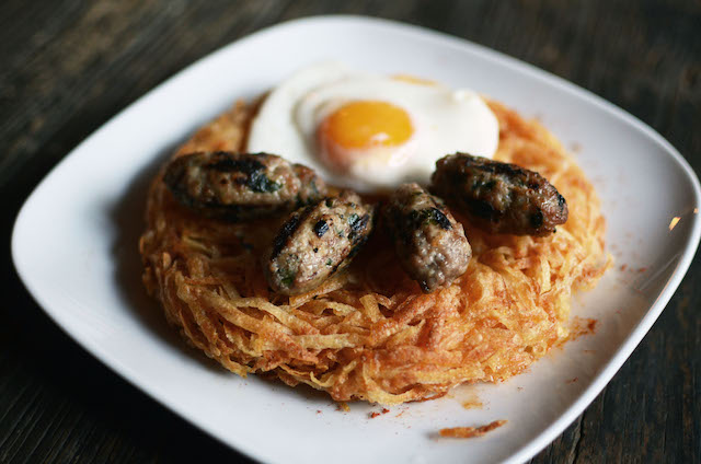 Συνεχίσαμε με τις αλμυρές πανδαισίες που φέρουν την υπογραφή του Γιώργου Πρίντεζη και ένα άλλο είδος αβγού. Σαν εκείνο που τρώγαμε όταν βλέπαμε τα Χριστούγεννα ως μηχανή δώρων. Το Gazi College Egg & Potato λοιπόν, είναι ένα τηγανητό αβγό, πάνω σε ένα εξαιρετικά τραγανό rostie πατάτας με χειροποίητο συριανό λουκάνικο. Το λουκάνικο του Gazi College, δεν θα μπορέσεις να το βρεις ακόμη κι αν ψάξεις σε όλα τα μαγαζιά της Αθήνας, αφού είναι δική τους συνταγή και περιέχει σιρόπι σφενδάμου και φασκόμηλο. «Σκοπός αυτού του πιάτου είναι να μας θυμίσει τα παιδικά μας χρόνια. Τότε που ο αγαπημένος μας συνδυασμός ήταν το αβγό, οι πατάτες και το λουκάνικο.»