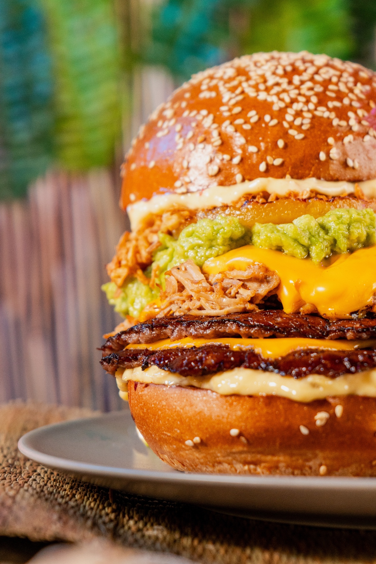 Το ΑΛΟΧΑ ΠΟΡΚ δεν φτιάχτηκε για να σου γεμίσει απλώς το στομάχι. Φτιάχτηκε για να σου αλλάξει το mood. Με διπλό smashed μοσχαρίσιο μπιφτέκι, pulled pork που λιώνει στο στόμα, τέσσερις στρώσεις cheddar (ναι, αφού η θάλασσα ανοίγει την όρεξη), τραγανά crispy fried onions, πουρέ αβοκάντο, καραμελωμένο ψητό ανανά και την all-star Tropical sauce με pineapple chutney. Μπέργκερ τολμηρό, εξωτικό και με μια εντελώς δική του φιλοσοφία. Αυτό ακριβώς που εκφράζει και το όνομά του.