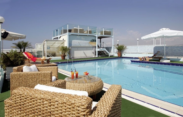 Εδώ κολυμπάς με θέα το Λυκαβηττό και το Instagram σου παίρνει φωτιά. Αυτά βλέπουν οι ξένουν στα social και νομίζουν πως δεν πληρώνουμε φόρους για να δίνουμε όλα μας τα λεφτά σε τέτοιου είδους απολαύσεις. Η πισίνα φυσικά βρίσκεται στον τελευταίο όροφο του ξενοδοχείου αλλά το καλύτερο είναι πως υπάρχει happy hour καθημερινά από 19:00-21:00 για να πιεις το ποτάκι σου ή το δροσερό cocktail σου μόνο με 6€, δίπλα στην πισίνα με όλη την Αθήνα στα πόδια σου.