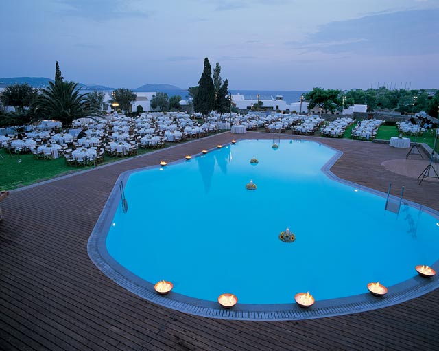 Όσο grand είναι το resort άλλο τόσο grand είναι και η πισίνα του Μια grand πισίνα μέσα στη θάλασσα, και μάλιστα με θαλασσινό νερό, ένα ξύλινο ντεκ για «ντεκόρ» και γεύσεις από το εστιατόριο Poseidon συμπληρώνουν το μότο του resort: Άνεση, πολυτέλεια και στυλ. Υπάρχει ακόμα και η κεντρική πισίνα, περιτριγυρισμένη από τους κήπους του ξενοδοχείου. Η τιμή τα Σαββατοκύριακα τσούζει σαν θαλασσινό νερό σε πληγή αλλά περιλαμβάνει ξαπλώστρα, ομπρέλα, χρήση αποδυτηρίων και πρόσβαση στις παραλίες του ξενοδοχείου.