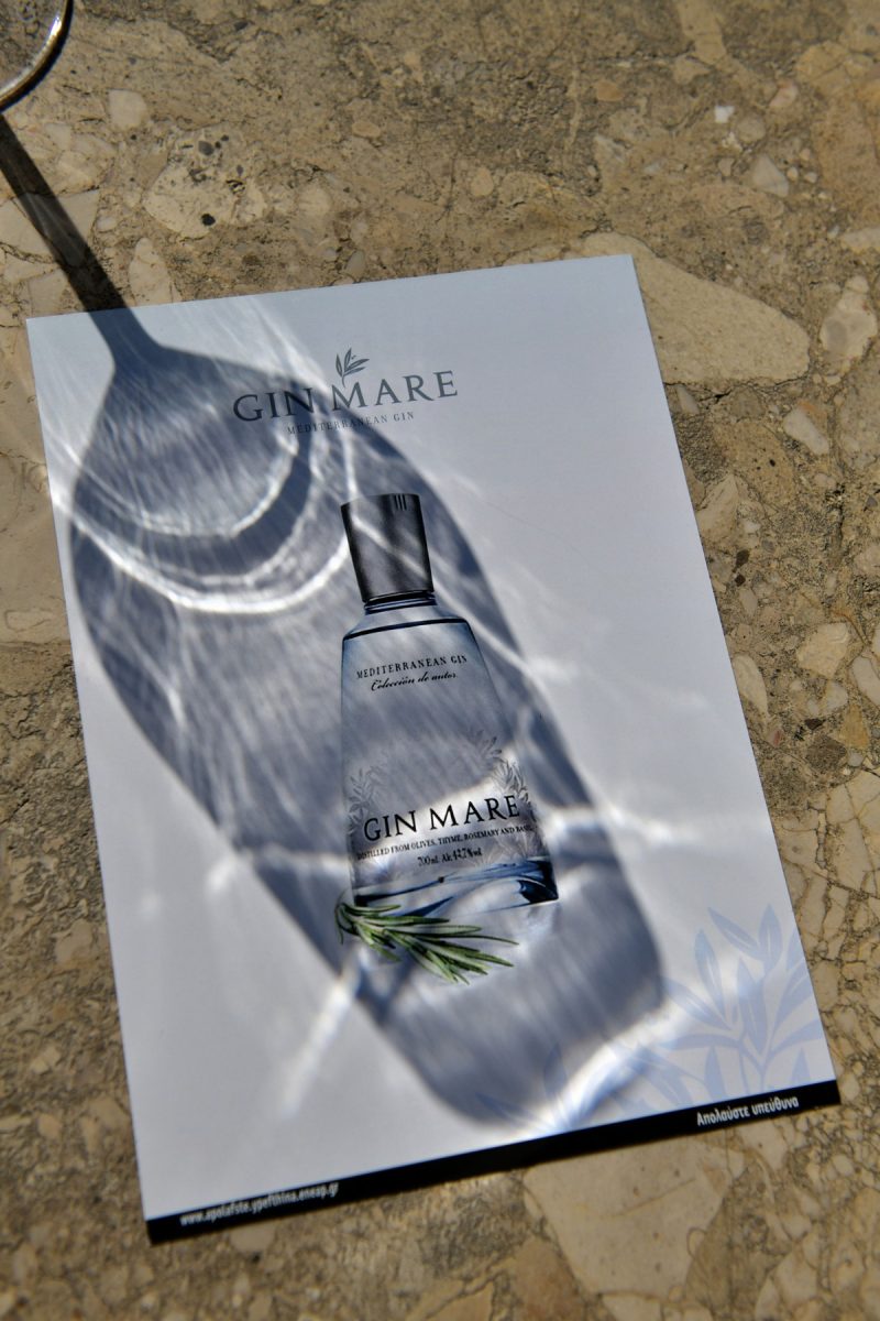 Το Gin Mare είναι ένα ιδιαίτερο gin, βγαλμένο μέσα από τα πιο μαγικά συστατικά της λεκάνης Μεσογείου. Παράγεται από το 2010 σε ένα ψαροχώρι με το όνομα Vilanova, μόλις τριάντα λεπτά από την Βαρκελώνη. Εκεί η οικογένεια Giró Ribot έφτιαχνε για χρόνια το πολύ πετυχημένο στην Ισπανία, Gin MG, όταν αποφάσισε να λανσάρει ένα νέο πιο premium gin. Ένα μπουκάλι Gin Mare στεκόταν στο τραπέζι που καθόμασταν με την Robyn και ο ήλιος έπαιζε με το όμορφο και στιβαρό μπουκάλι του.