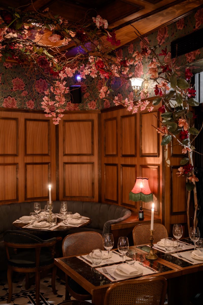 Οι ρετρό πολυέλαιοι, η κομψή φλοράλ ταπετσαρία, οι βελούδινοι καναπέδες και το one of a kind χρυσό καφασωτό ταβάνι, τελειοποιούν τον αυθεντικό παριζιάνικο αέρα του χώρου και προσθέτουν μια αίσθηση κινηματογραφικής αίγλης. Ό,τι ακριβώς χρειάζεσαι για τις γιορτινές μέρες -αλλά μεταξύ μας, και όλο τον χρόνο!