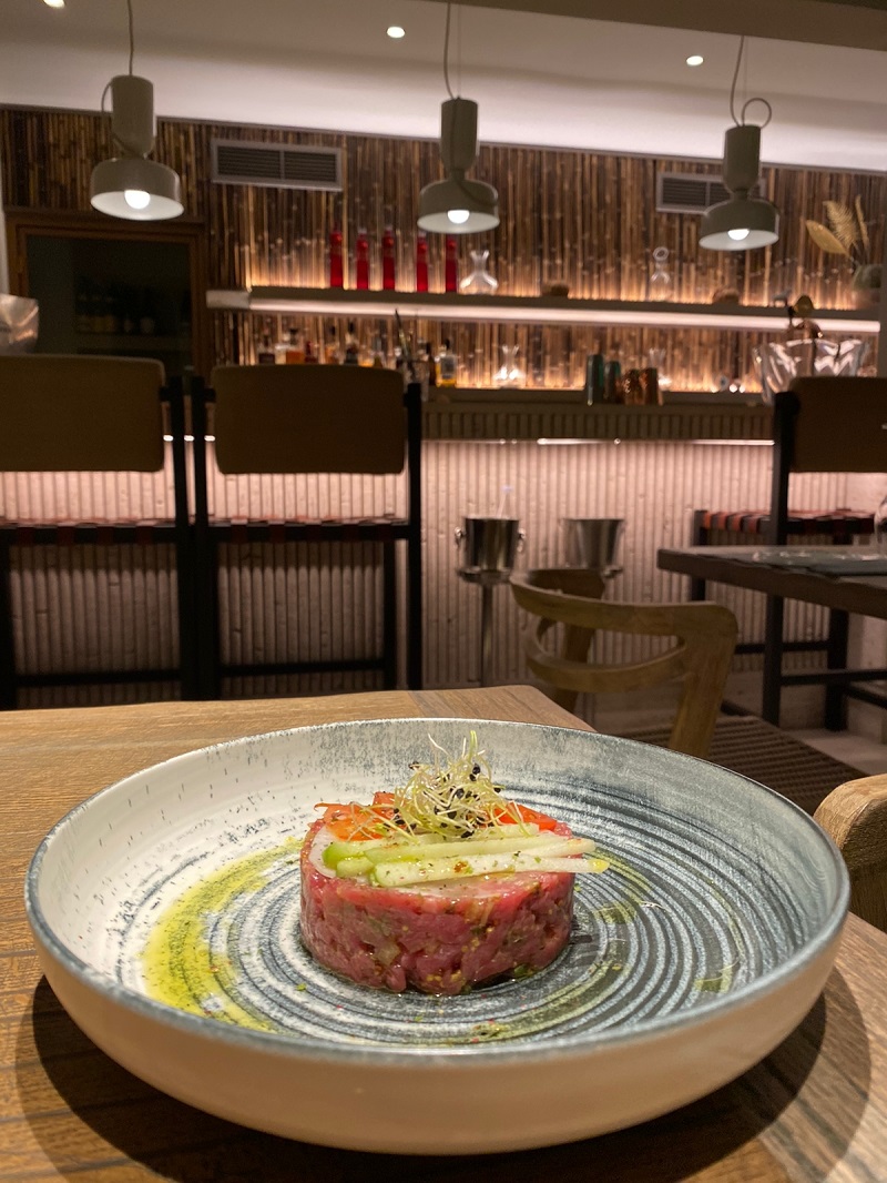 Από τα ορεκτικά, το ντελικάτο μοσχαρίσιο ταρτάρ σε αλμυρή μαρινάδα με ντοματίνια, ξινόλημο και γογγύλια ήταν πολύ γευστικό, ενώ απολαύσαμε ιδιαίτερα και τους αλμυρούς λουκουμάδες. Για να σου δώσω να καταλάβεις, μιλάμε για λουκουμάδες φέτας που συνδυάζονται αρμονικά με butterscotch (σως καραμέλας), με το παιχνίδι αλμυρού-γλυκού να λειτουργεί πολύ καλά.