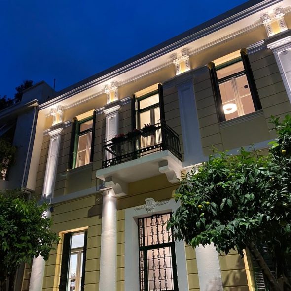 Το εστιατόριο βρήκε το σπίτι του σε ένα νεοκλασικό κτίριο του 1925 πίσω από το Καλλιμάρμαρο, με υπέροχη αυλή που περιβάλλεται από δέντρα.Την ανακαίνιση ανέλαβε ως Project Architect η Δήμητρα Γωγή (dimensionstudio.gr), η οποία συνδύασε τολμηρά χρώματα με γήινους τόνους, δημιουργώντας πραγματικά την αίσθηση μίας αθηναϊκής κατοικίας που σέβεται το παρελθόν της.