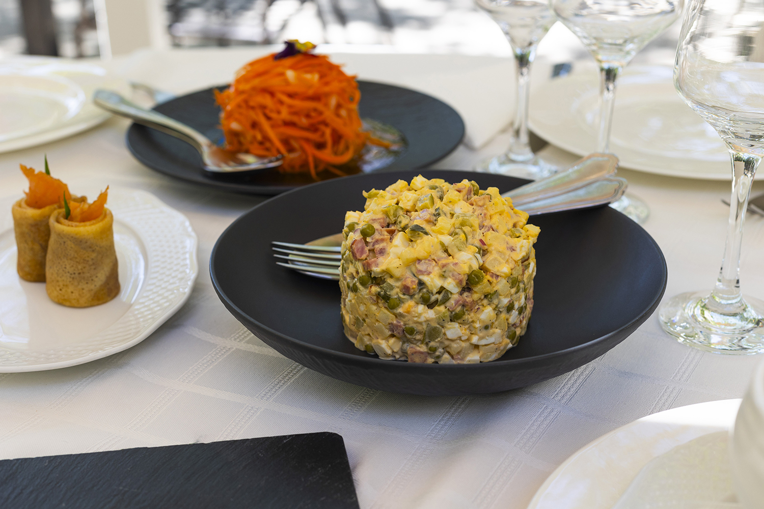 Δοκιμάσαμε τη σαλάτα Ολιβιέ, μια παραδοσιακή και γεμάτη ρώσικη πατατοσαλάτα που σίγουρα θα αφήσει τους λάτρεις αυτού του πιάτου ικανοποιημένους και συνεχίσαμε με Μαρκαφτσιά, μια φρεσκοκομμένη καροτοσαλάτα με κρεμμύδι που έχει ιδιαίτερη, πικάντικη γεύση.