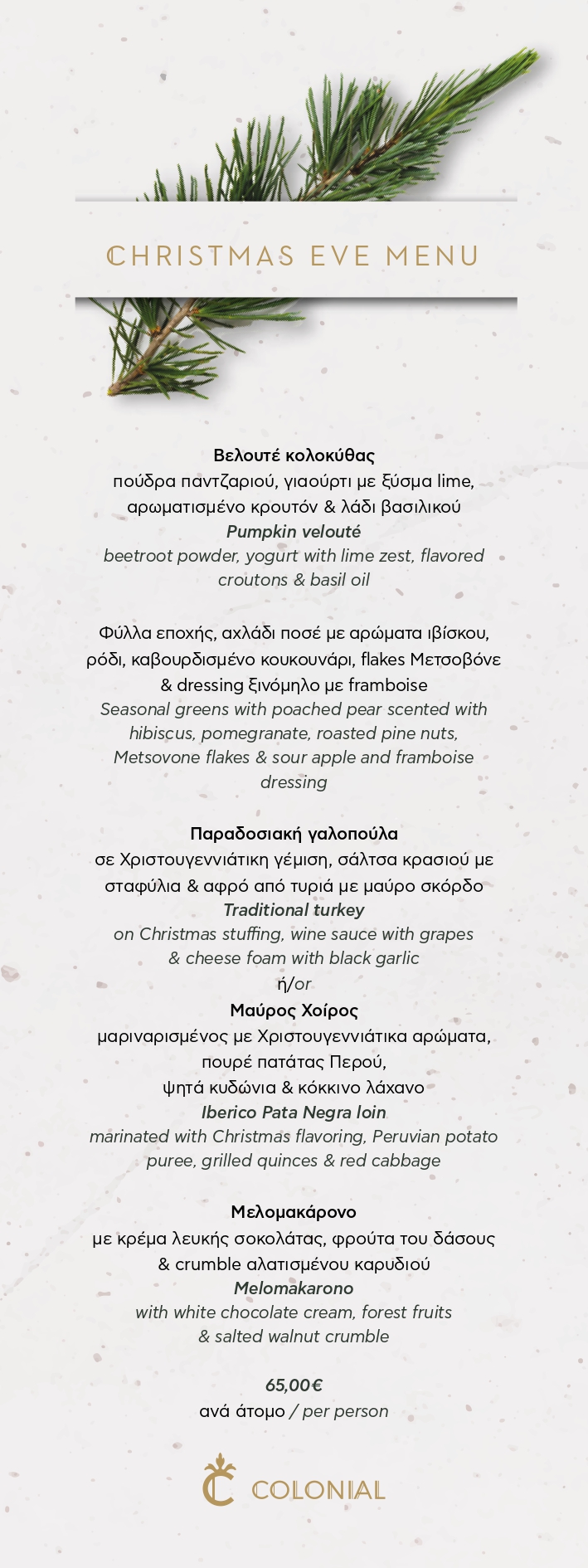 Κόστος Χριστουγεννιάτικου μενού: 65€ / άτομο