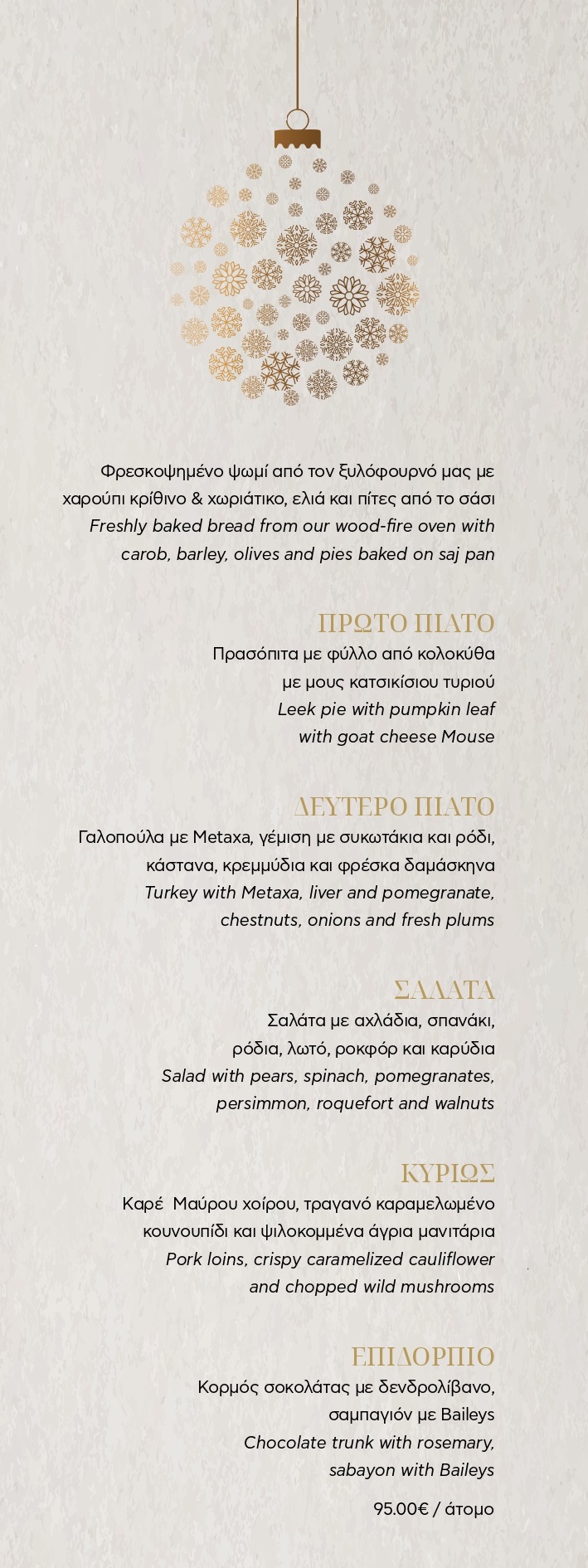 Κόστος Χριστουγεννιάτικου μενού: 95€ /άτομο