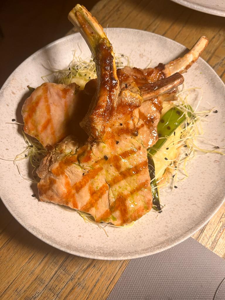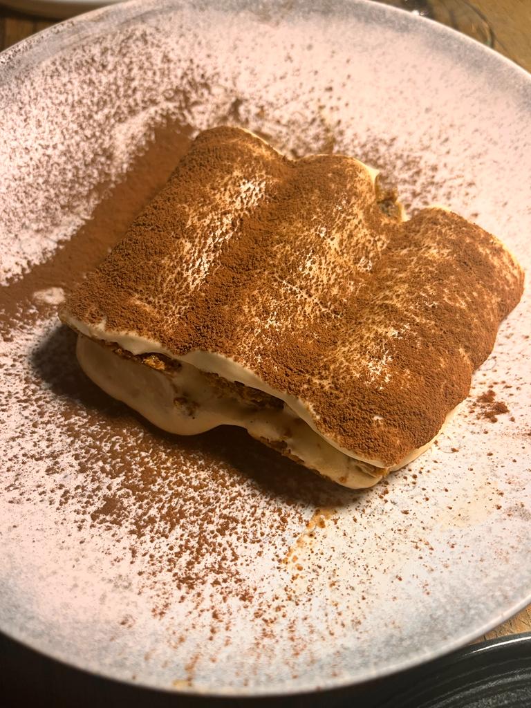 Από τα κυρίως ξεχωρίσαμε το αγαπημένο πιάτο της Φένιας: το τρυφερό και ζουμερό χοιρινό iberico το οποίο ακομπανιάρεται με σκορδάτο πουρέ πατάτας και φασολάκια, ενώ ολοκληρώσαμε ευχάριστα το δείπνο μας με ένα αφράτο τιραμισού, πολύ κοντά στη φίνα συνταγή των γειτόνων μας.