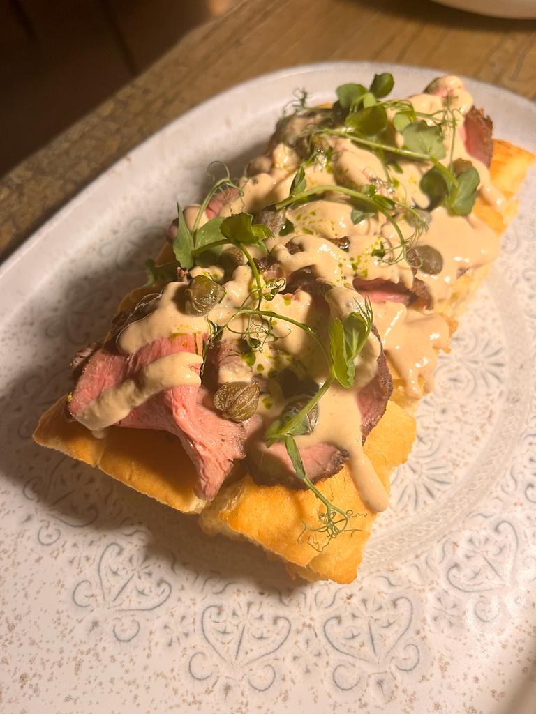 Να πούμε κάτι σε αυτό το σημείο: μπορεί τα εστιατόρια ιταλικής κουζίνας να αυξάνονται στην Αθήνα, όμως το Sàlve με την εξωστρεφή προσωπικότητα είναι μια άλλη περίπτωση, καθώς από το νέο του μενού δεν λείπει η διάθεση πειραματισμού. Πάρε για παράδειγμα το vitello tonnato, μια από τις πιο γνωστές ιταλικές σπεσιαλιτέ, η οποία συνδυάζει με αρμονία τις γεύσεις της θάλασσας με της στεριάς: εδώ, το πιάτο δεν σερβίρεται σκέτο, αλλά ως «μπρουσκέτα», πάνω σε αφράτη φοκάτσια, με το μοσχάρι να είναι σωστά ψημένο και κομμένο, την κάπαρη να έχει παρουσία και την κρεμμώδη σάλτσα τόνου να διαθέτει τις πρέπουσες εντάσεις οξύτητας για να ισορροπεί.