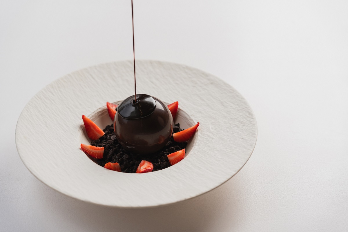 Κλείσαμε απολαυστικά με μία σφαίρα σοκολάτας σε κραμπλ από κακάο με φρούτα του δάσους, που όταν φτάνει στο τραπέζι την περιχύνουν με ζεστή σοκολάτα για να αποκαλύψουν τις εκπλήξεις στο εσωτερικό της ή αλλιώς το μπράουνι και το παγωτό βανίλια. Πάρε μια γενναιόδωρη κουταλιά από όλα και θα έχεις το ιδανικό σβήσιμο στο γεύμα σου.