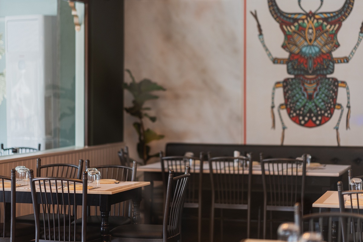 Περνώντας στα του μενού τώρα, η ομάδα της κουζίνας εξηγεί ότι, «Εμπνευσμένοι από τη μεταμορφωτική φύση του σκαθαριού, μεταμορφώνουμε στην κουζίνα μας τα καλύτερα συστατικά από ντόπιους αγρότες και παραγωγούς, με κάθε πιάτο στο μενού μας να λέει μια ιστορία γαστρονομικής εμπειρίας και καινοτομίας». Εδώ, οι χειροποίητες παρασκευές έχουν τον πρώτο λόγο, ώστε να προσφέρονται καθημερινά ποιοτικά πιάτα, φτιαγμένα με φαντασία.