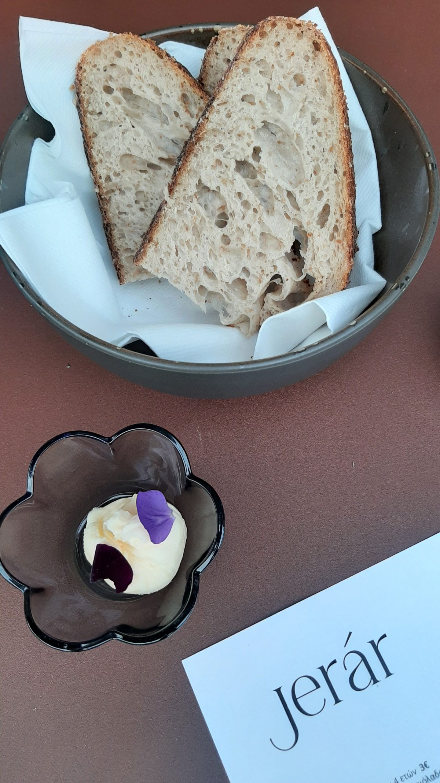 Ο σεφ Χάρης Νικολούζος έχει φτιάξει έναν κατάλογο για όλα τα γούστα, χωρίς πολλές φανφάρες αλλά με μεγάλη ουσία. Πιάτα τα οποία ο ίδιος ξέρει καλά, αφού τα έχει σερβίρει σε εστιατόρια fine dining όπου δούλευε στο παρελθόν. Στην αρχή στο τραπέζι θα φτάσει το ψωμί με φυσικό προζύμι τεσσάρων ετών (το οποίο θα δεις στα ράφια του μαγαζιού και προσέχει ο σεφ σαν παιδί του) μαζί με ένα βούτυρο από ξινή κρέμα μαζί με ελαιόλαδο από τη Μάνη. Και, κάπως έτσι, το γεύμα αρχίζει ήδη να έχει τρομερό ενδιαφέρον.
