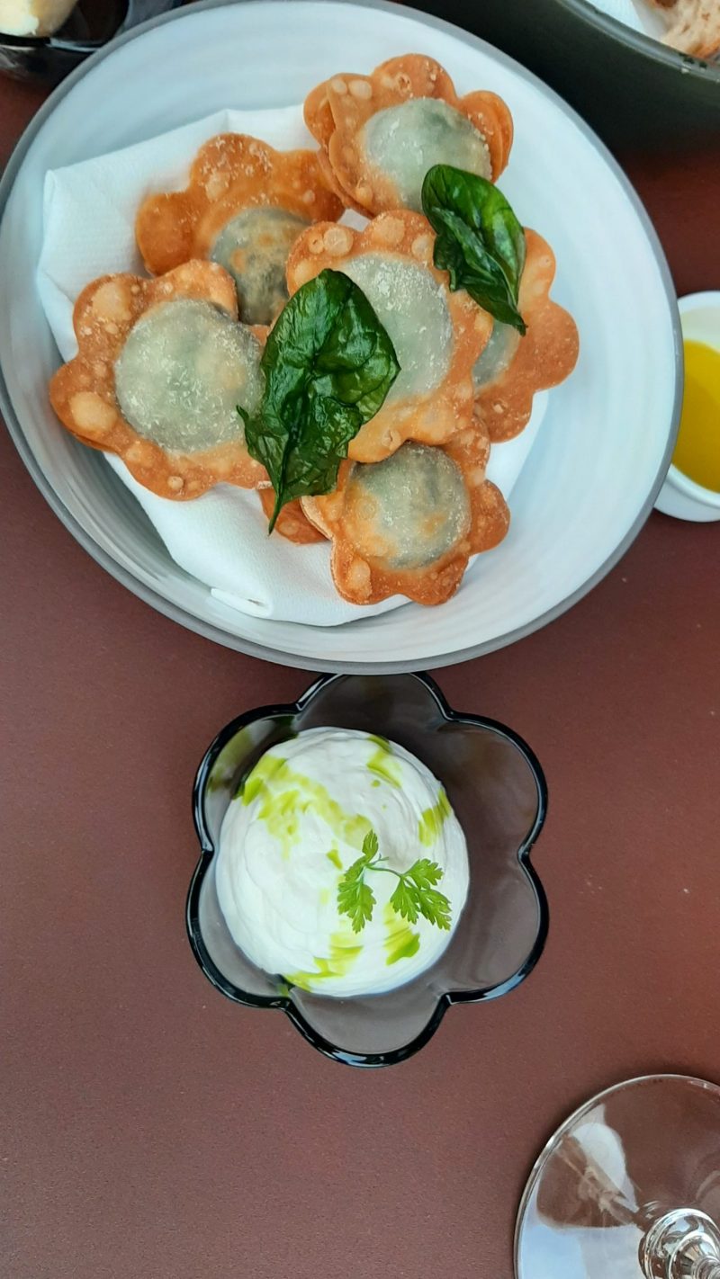 Για τη συνέχεια, εγώ δοκίμασα τα σπανακοπιτάκια, που ήταν απίστευτα τραγανά και πεντανόστιμα. Σαν κυρίως ήρθε μπροστά μου το σκουμπρί σαβόρο με πουρέ καπνιστού χουρμά, αβγοτάραχο του Τρικαλινού και ζωμό από πίκλα. Αυτό το πιάτο έχει σερβιριστεί έτσι ακριβώς στην εμβληματική Selene της Σαντορίνης και για μένα αποτελεί ένα προσωπικό αγαπημένο αφού όλες οι γεύσεις λειτουργούν άψογα και δημιουργούν μια υπέροχη ισορροπία. Πρέπει να το δοκιμάσετε.