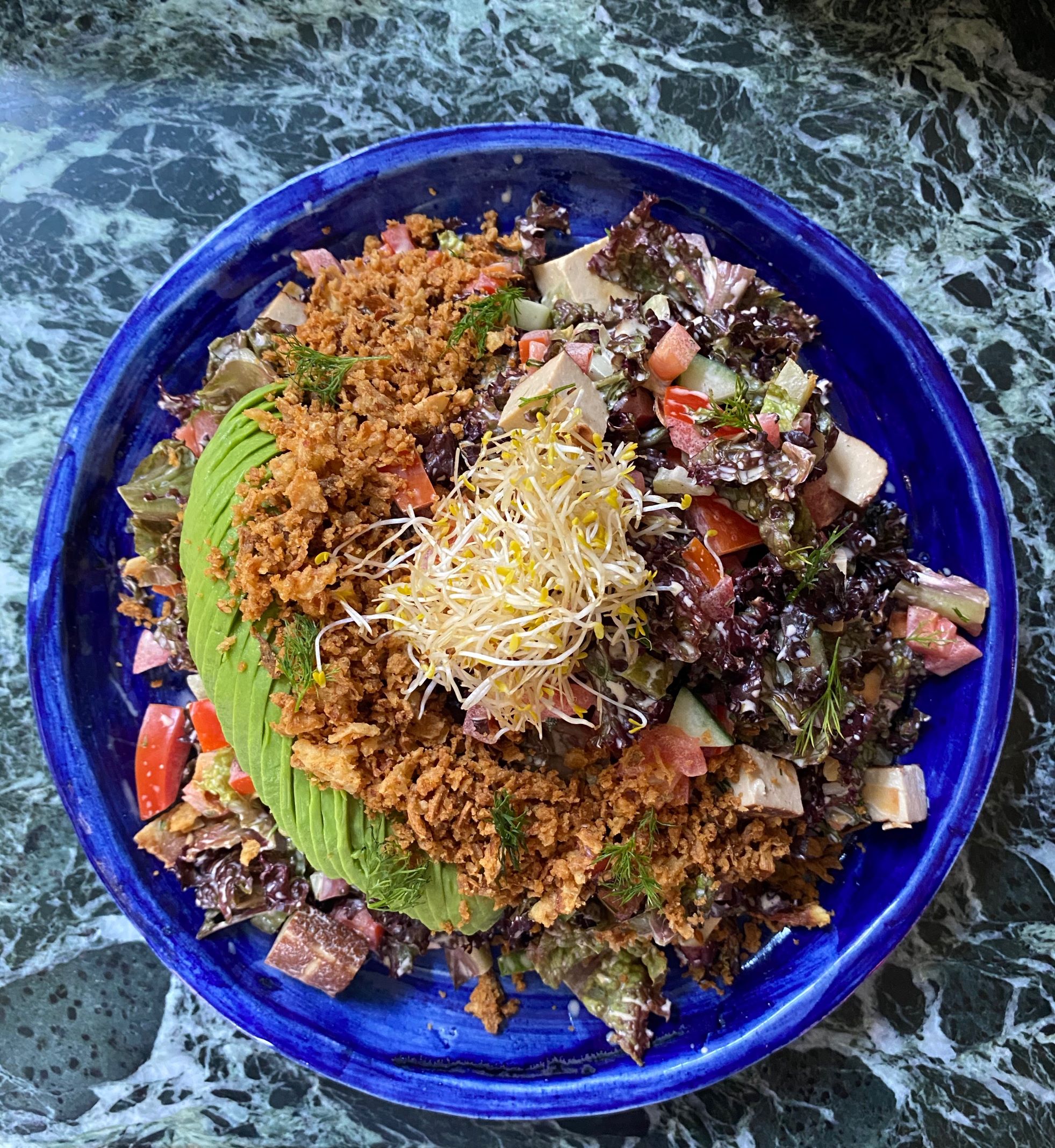Ο Άλκης μας εγγυάται πως κάθε φορά που θα πάμε στο Winners, θα βρούμε σίγουρα κάτι καινούργιο να δοκιμάσουμε. Στο μενού που υπάρχει αυτήν την περίοδο, ο ίδιος προτείνει να παραγγείλουμε οπωσδήποτε την «L.A. Salad», που ακούγεται νοστιμότατη και κάτι παραπάνω από πλήρης. Είναι μάλιστα, όπως λέει ο ίδιος το μεγαλύτερο πιάτο που ετοιμάζουν. Αποτελείται από χειροποίητο καπνιστό τόφου, “μπέικον” καρύδας, χειροποίητη μαγιονέζα χωρίς λάδι, crispy onions που μοιάζουν τηγανητά αλλά είναι ψημένα στο φούρνο, λόλα, ντομάτα, αγγούρι και αβοκάντο. «Ο κόσμος αναζητά συνεχώς αυτό το πιάτο» λέει.