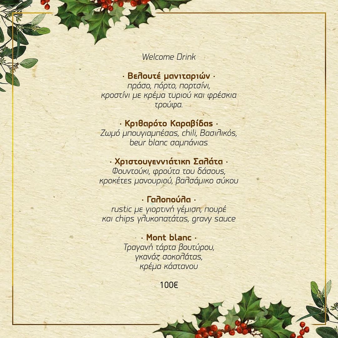 Κόστος Χριστουγεννιάτικου μενού: 100€ / άτομο