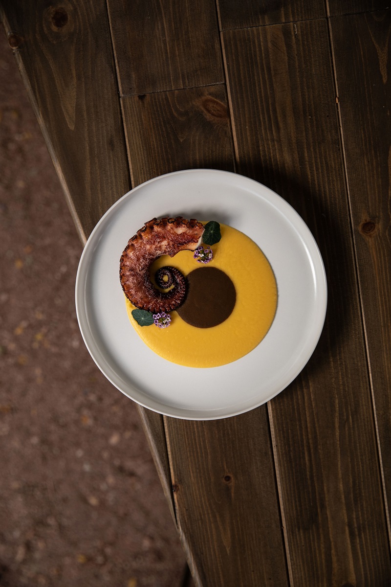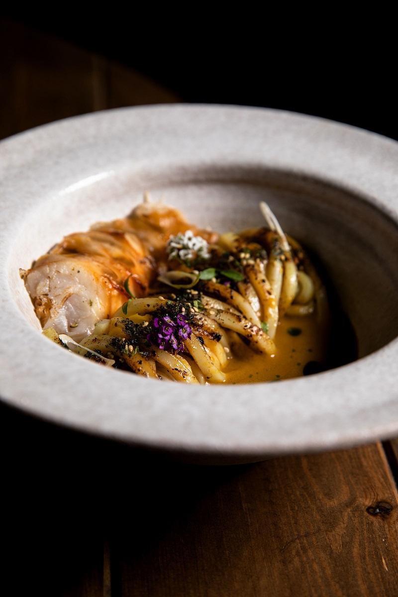Αν αγαπάς το αναπάντεχο, θα εκτιμήσεις δεόντως την «αθηναϊκή» σφυρίδα πάνω σε μικρά, διπλο-ψημένα pavés πατάτας, καθώς και τις μίνι empanadas γεμιστές με σπετζοφάι και μετσοβόνε και λίγο γιαούρτι στην κορυφή για ισορροπία, ενώ για τη συνέχεια σου προτείνω ανεπιφύλακτα να πεις ένα μεγάλο «ναι» σε ένα από τα ωμά του καταλόγου. Ο λόγος για τον υποδειγματικά κομμένο γαλαζόπτερο τόνο με τρούφα shiso, kohlrabi και ponzu, που «ανεβάζει» τις στροφές με χαρακτηριστική ευκολία και συνεχίζει να βαδίζει σταθερά πάνω στο όραμα του σεφ, όπως και τα προηγούμενα πιάτα.