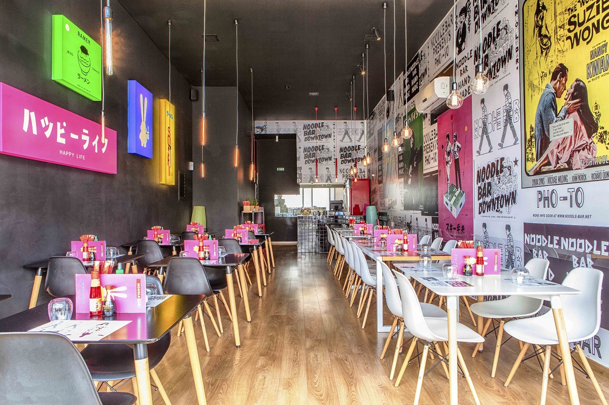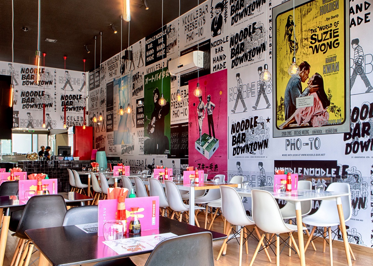 Με δυο καταστήματα από τα επτά, στα Νότια προάστια, ένα στο Φάληρο και ένα στην Γλυφάδα, το Noodle Bar υπόσχεται να σε ταξιδέψει Κίνα, Ιαπωνία, Βιετνάμ, Κορέα και Ταϊλάνδη, με μία και μόνο επίσκεψη. Το κάθε εστιατόριο, είναι γεμάτο κινηματογραφικές αναφορές, με poster από ασιατικές Β- Μovies που θα συναντήσεις στον Σύλλογο Φίλων Κακού Σινεμά, όπως ο Superman Chu, από παλιές ταινίες της Ταϊλάνδης, αλλά και ταξιδιωτικές αφίσες που δημιουργούν ένα εξωτικό σκηνικό. Ιστορικό ενδιαφέρον έχουν και οι πολιτικές προπαγανδιστικές αφίσες που απεικονίζουν τους ήρωες κινέζους πιλότους, μακρινοί απόηχοι της πολεμικής Κίνας.