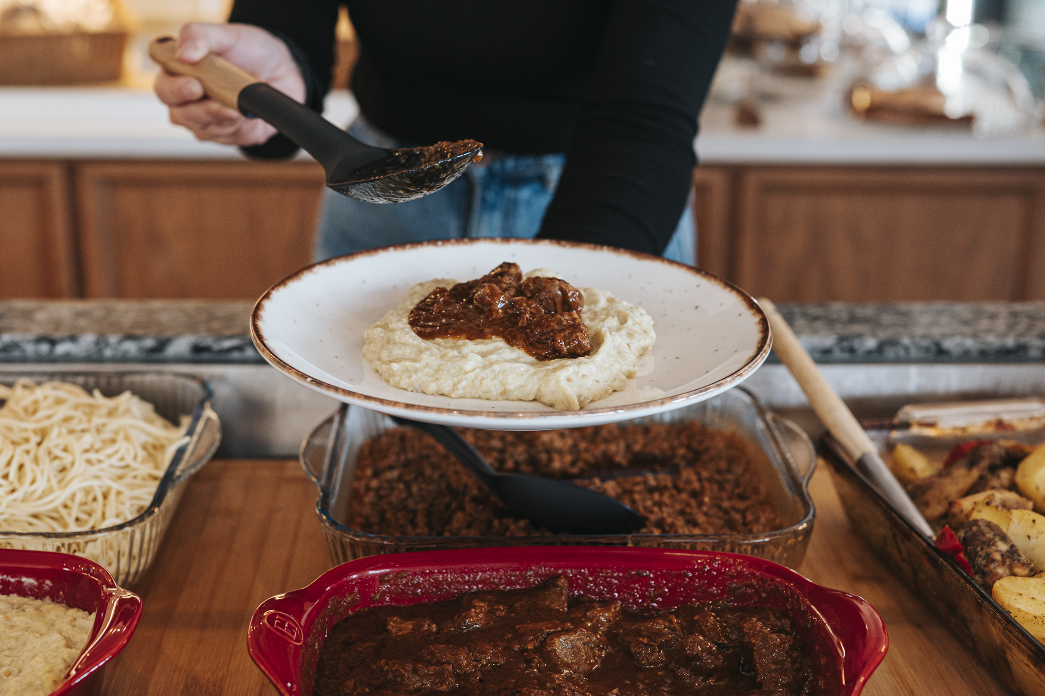 Περνώντας στα μεσημεριανά, δοκιμάσαμε τη best seller χειμερινή τους σαλάτα με ψιλοκομμένο, ωμό μπρόκολο και κουνουπίδι. Εδώ τα τραγανά λαχανικά ανακατεύονται με σταφίδα, φιλέ από αμύγδαλο και μια ελαφριά, χειροποίητη μαγιονέζα και συνθέτουν ένα πιάτο πρωτότυπο και ονειρικό, που μόνο αν δοκιμάσεις καταλαβαίνεις το μεγαλείο του. Από τα μαγειρευτά δοκιμάσαμε το πολίτικο χουνκιάρ μπεγεντί με μοσχαράκι που έλιωνε στο στόμα και βελούδινο πουρέ μελιτζάνας. Σκέτο ποίημα και ειλικρινά, ελπίζουμε κάποια στιγμή να το πετύχεις.